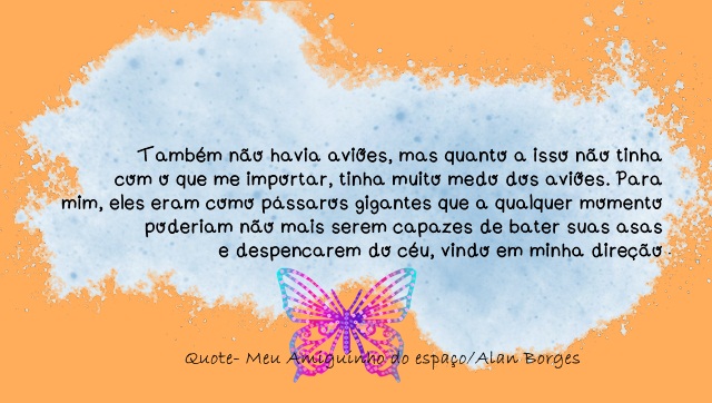 Os quotes, esse trechos de livros que postamos, são uma ótima maneira de possibilitar ao leitor uma experiência sobre o que a obra tem a oferecer. Resolvi trazer pra vocês hoje uma pouquinho do livro Meu Amiguinho do Espaço, só pra vocês terem ideia das coisas maravilhosas as quais são apresentadas nele.